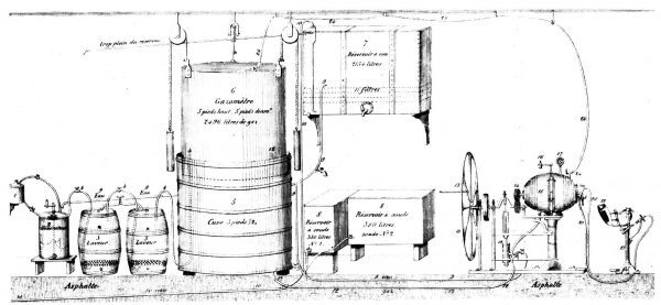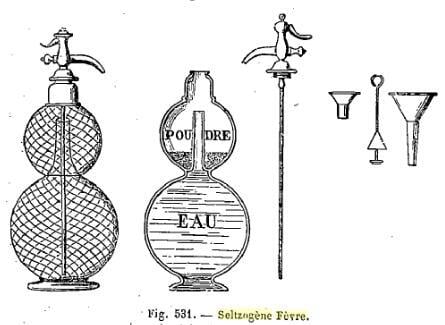 Se trataba de la fuente de sodas y consistía en una cámara con plomo, ácido sulfúrico y mármol pulverizado (carbonato de calcio) que al estar mezclados producían dióxido de carbono (CO2) gaseoso. El gas era enviado a un tanque de agua fría donde se lo agitaba unos treinta minutos para disolver el gas. El líquido viajaba a través de un tubo y salía por un grifo. Esta máquina de fuentes de soda catapultó las ventas de bebidas carbonatadas o gaseosas. De esta manera las sodas (nombre que se le da al agua cuando se le añade ácido carbónico) se volvieron muy populares en todo el mundo.