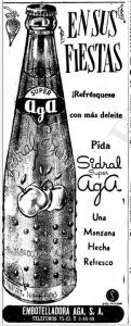 1948. Abelardo García Arce crea en 1931 la compañía Tepeyac, Hielo y Refrigeración. En 1948, se fusiona con la refresquera La Pureza y forman la Embotelladora Aga, típica del occidente del país. Sus refrescos distintivos son los Caballitos y Sidral Aga.